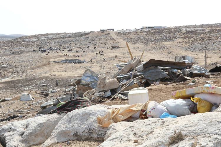 قوات الاحتلال تهدم 8 بركسات في تجمع المغازي شرق جبع