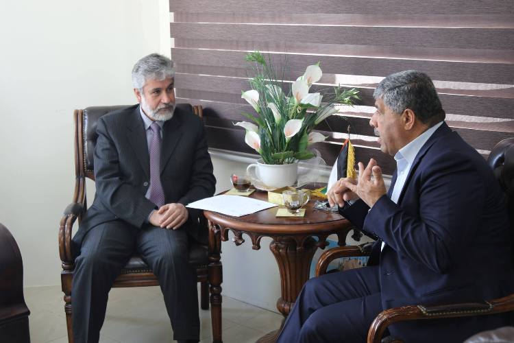 رام الله- إستقبل رئيس هيئة مقاومة الجدار والاستيطان الوزير وليد عساف، صباح اليوم، وكيل وزارة الاعلام الدكتور محمود خليفة، ومسؤولة العلاقات العامة والإعلام في وزارة الإعلام نداء يونس، بهدف بحث سبل التعاون المشترك، من أجل توحيد المخرج في المعلومات والارقام الصادرة عن المؤسسات والجهات ذات الاختصاص في موضوع الجدار والاستيطان.