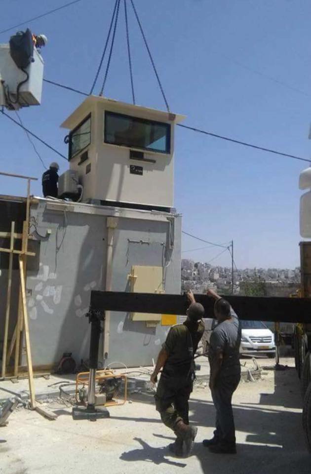 الخليل- قامت قوات الاحتلال صباح اليوم، بوضع برج مراقبة وبوابة الالكترونية على المدخل الجنوب الغربي لتل الرميدة، بالقرب من عمارة قفيشة.