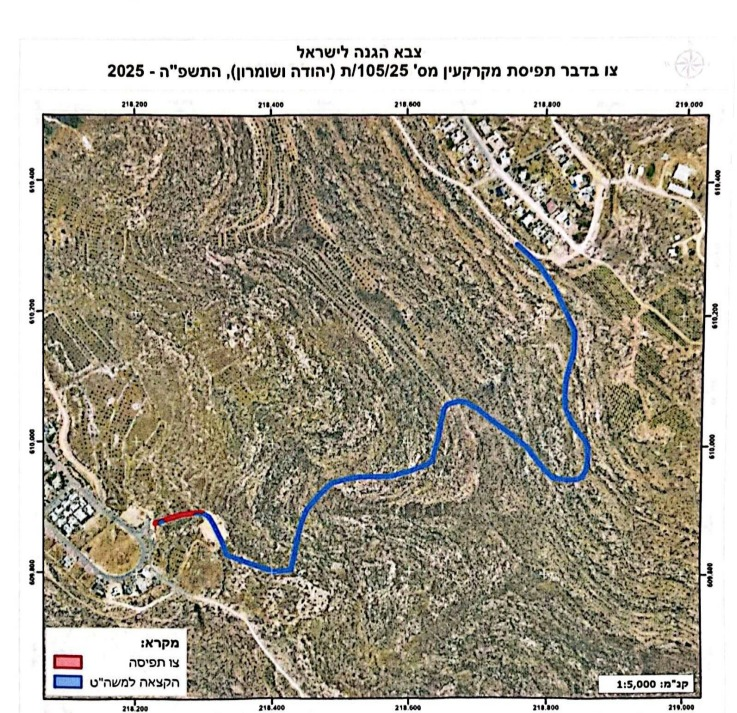 الأمر العسكري الذي حمل الرقم (ت/105/25) يهدف إلى وضع اليد على المساحة المذكورة سابقاً بهدف شق طريق استعماري يصل بين مستعمرتي أصفر وبيني كيدم المقامتان على أراضي بلدتي الشيوخ وسعير.