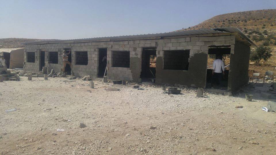 تم عملية إعادة البناء لخمس غرف صفية بالطوب وسقفها بالحديد المصفح، بمشاركة رئيس هيئة مقاومة الجدار والاستيطان الوزير وليد عساف، وكادرها ، وعدد من النشطاء، وأبناء قرية بيت تعمر.