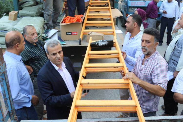 المرحلة الاولى عملية توزيع الادوات، في محافظة قلقيلية، تم تسليم 78 حصة، لــ 78 مزارع مستفيد من الحملة في موسمها الثالث.