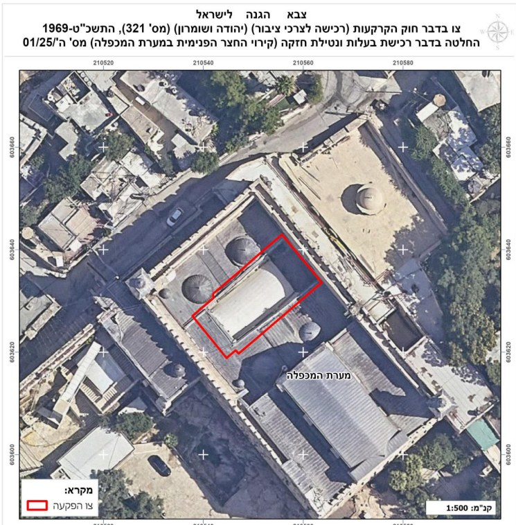 15 Sep. 2025: The Wall and Settlement Resistance Commission revealed today that the Israeli occupation authorities issued an order to seize the roof of the inner courtyard of the Ibrahimi Mosque in the city of Hebron, through an expropriation order issued today, which stipulates the confiscation of 288 square meters of the mosque’s designated roof.