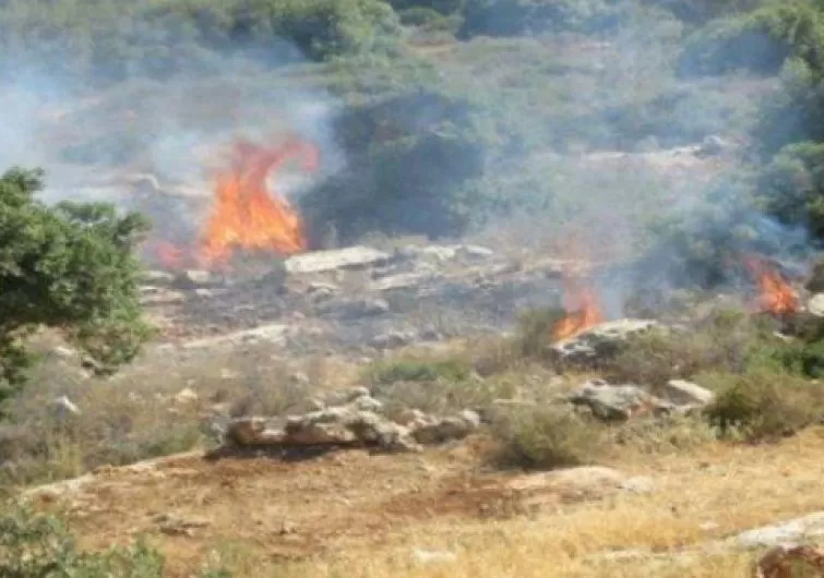 هاجم مجموعة من المستعمرين أراضي المواطنين بين قرية ترمسعيا، وأبو فلاح، وأضرموا النيران فيها، ما أدى إلى احتراق بعض الأشجار القريبة.