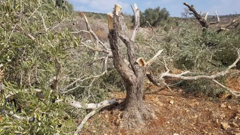 اقتلعت مجموعة من المستعمرين وكسرت 60 شجرة زيتون تعود ملكيتها للشقيقين عبد الله ومحمد أيوب اعبيد، بالإضافة لقطع وتخريب سياج يحيط بالأرض، وردم بئر مياه قيد الإنشاء.