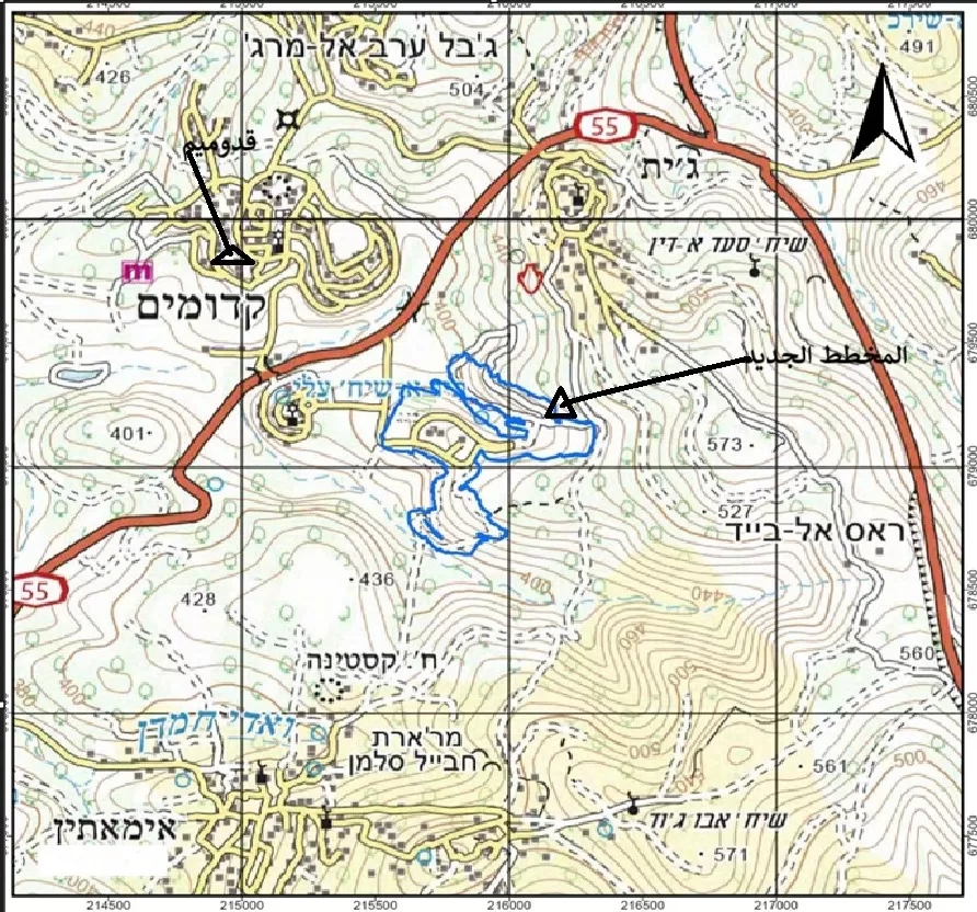 وأضاف شعبان أن ذات الوثائق كشفت عن إيداع الاحتلال لمخطط هيكلي آخر يهدف لإنشاء حي جديد يخص مستعمرة كدوميم المقامة شرقي محافظة قلقيلية من خلال إيداع المخطط الهيكلي الذي يحمل الرقم יוש/ 17/ 113 والذي يهدف لبناء 1388 وحدة استعمارية جديدة على مساحة تصل إلى 239 دونماً من أراضي قرى جيت وكفر قدوم، ويقع الحي المشار إليه إلى الجنوب من شارع 55.