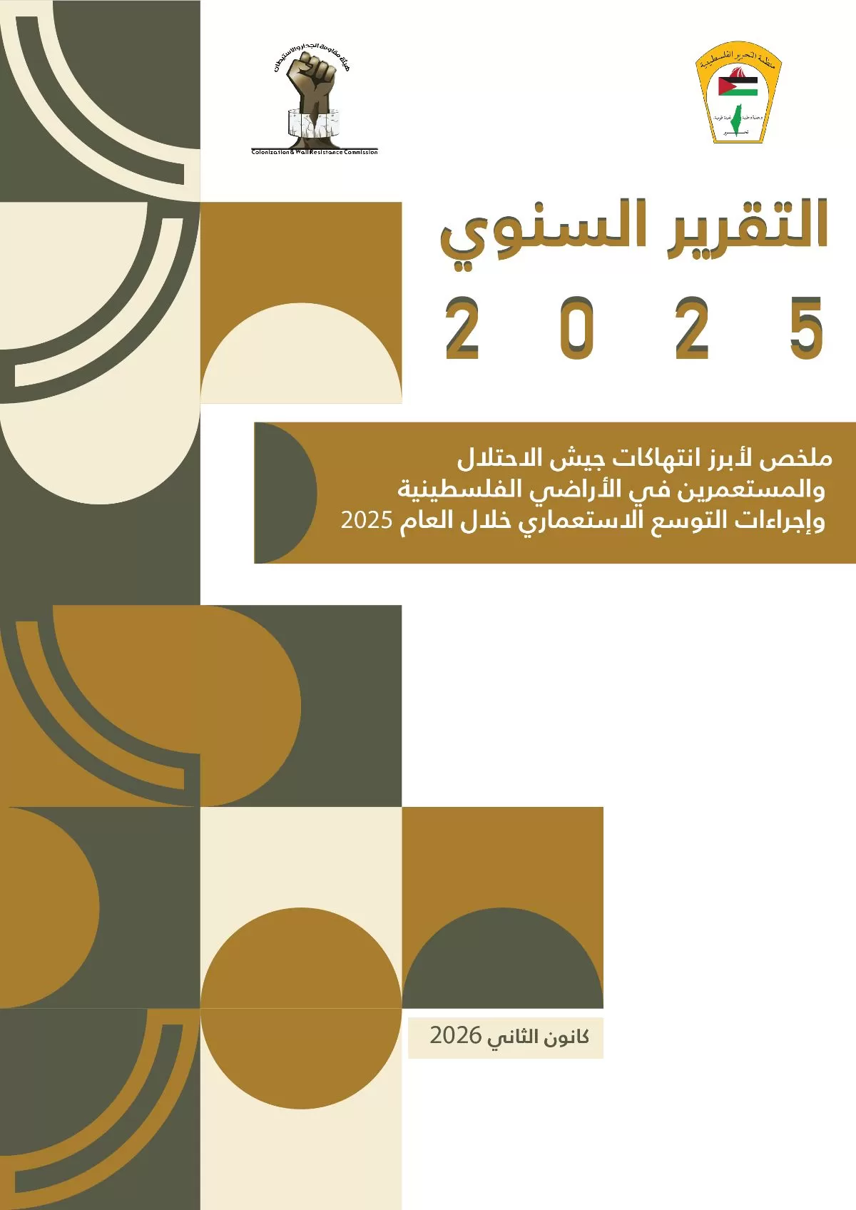 ويخلص هذا التقرير إلى أن ما جرى خلال عام 2025 لا يمكن قراءته بوصفه تصعيداً عابراً، بل كمرحلة متقدمة في مشروع استعماري إحلالي متكامل، يسعى إلى إعدام حل الدولتين، وتفكيك الجغرافيا الفلسطينية، وتحويل الاحتلال إلى واقع دائم مفروض بالقوة والقانون معاً. وفي مواجهة ذلك، يؤكد التقرير أن حماية الأرض الفلسطينية لم تعد شأناً قطاعياً أو ظرفياً، بل مسؤولية وطنية شاملة تتطلب توحيد الجهود، وتعزيز الصمود، وتفعيل أدوات المواجهة القانونية والشعبية، وبناء خطاب سياسي موحد يعيد تعريف ما يجري بوصفه استعماراً استيطانياً مكتمل الأركان، لا نزاعاً قابلاً للإدارة أو الاحتواء.