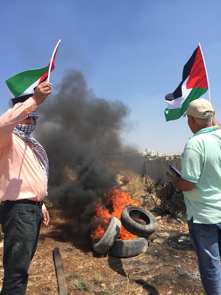 ورفع المشاركون، العلم الفلسطيني ورددوا الهتافات المنددة بالاحتلال، والداعية للتصدي للمؤامرات التي تستهدف قضيتنا الوطنية.