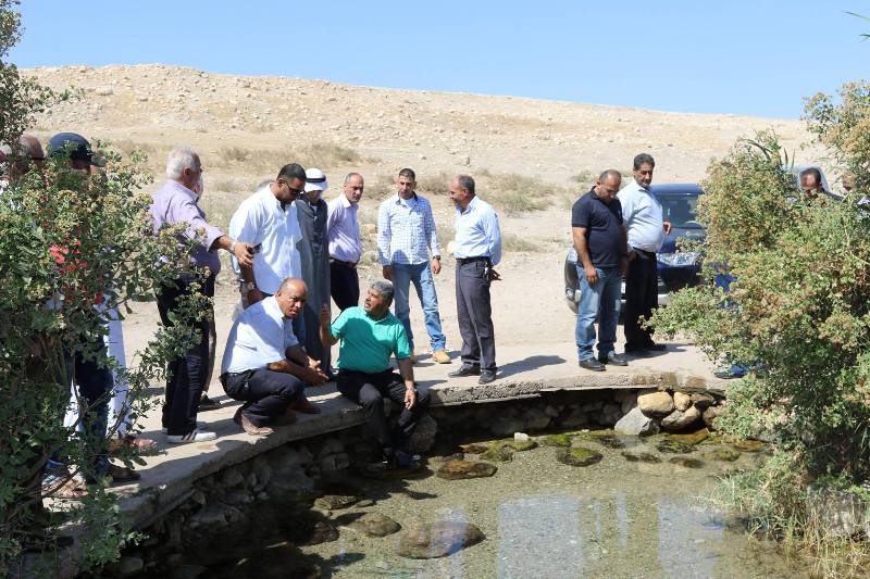 طوباس - تفقد رئيس هيئة مقاومة الجدار والاستيطان الوزير وليد عساف، يرافقه محافظ طوباس والأغوار ربيع خندقجي، منطقتي عين الساكوت والقاعون في الأغوار الشمالية، اليوم الاثنين، واطلع على الأراضي التي تمت استعادتها مؤخرا من الاحتلال الاسرائيلي بعد الاستيلاء عليها عام 1967، البالغة ما يقارب 4500 دونم (3500 في عين الساكوت وألف في القاعون).