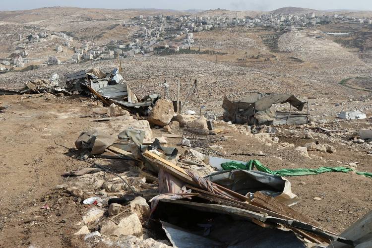 قوات الاحتلال تهدم 8 بركسات في تجمع المغازي شرق جبع
