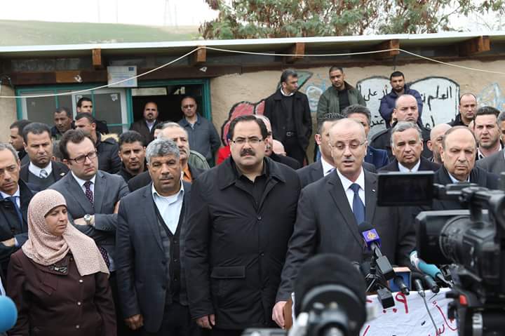 وأردف رئيس الوزراء: "القيادة والحكومة ستوفر كافة احتياجات المنطقة وكافة المناطق والتجمعات البدوية التي يبلغ عددها 46 تجمعا يسكنها أكثر من 7 آلاف مواطن، عبر كافة الجهات والوزارات المعنية، ونبذل كافة الجهود لمنع أي هدم وإزالة في المنطقة". رافق رئيس الوزراء محافظ القدس ووزير شؤونها عدنان الحسيني، ووزير التربية والتعليم صبري صيدم، ورئيس هيئة مقاومة الجدار والاستيطان وليد عساف، وعدد من القناصل والسفراء.