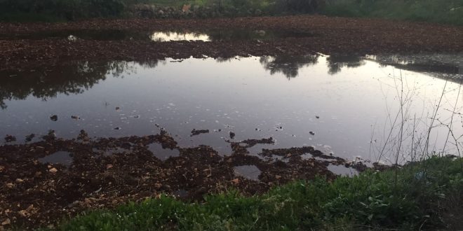 بيت لحم- أغرقت قوات الاحتلال الإسرائيلي، أراضي زراعية في قرية بيت تعمر شرق بيت لحم بالمياه العادمة.