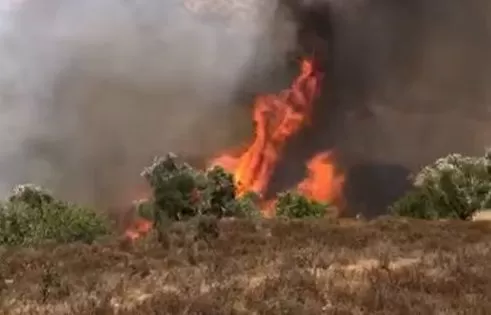 28 حزيران،2025:أشعل مستعمرون النيران في أراضي المزارعين بمنطقة باب الواد التابعة لبلدة يبرود شرق رام الله.