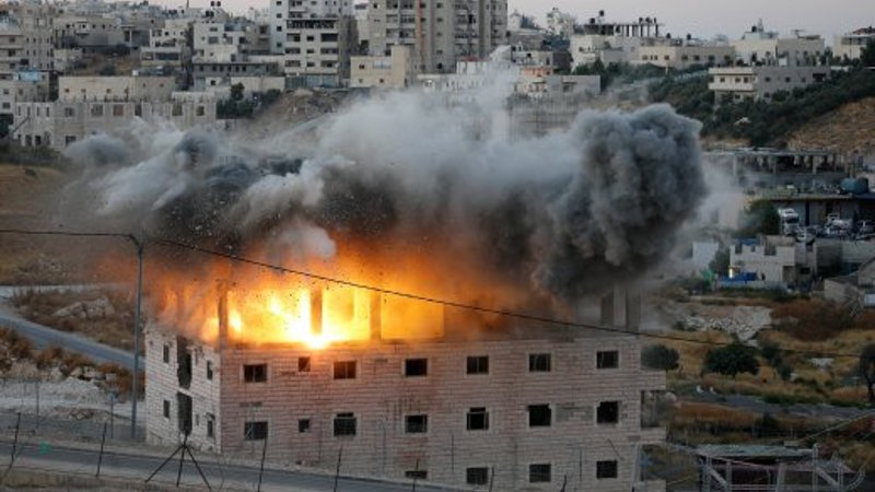 شاهد: لحظة تفجير بناية عائلة محمد أبو طير في وادي الحمص