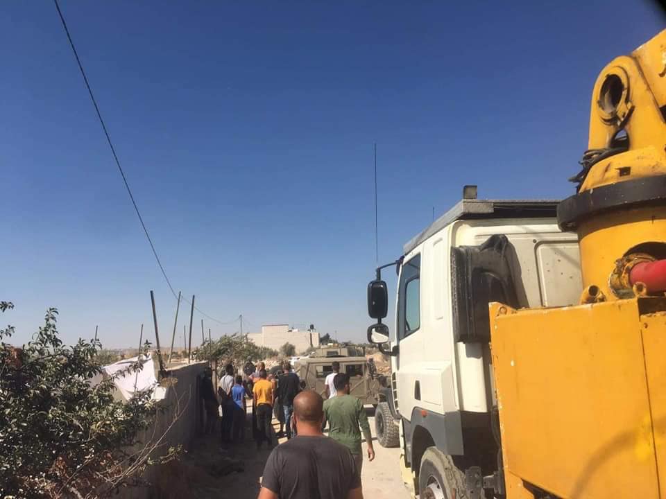 يطا- داهمت قوات الاحتلال اليوم منطقة خله الميه شرق مدينه يطا، وتصادر مضخه باطون لمصنع ابو حسين، اثناء العمل في منزل زياد زيد ابو مياله هذا وقد اخطرته شفوياً بوقف العمل والبناء بحجه انها منطقه (ج) ولا يوجد بها ترخيص.