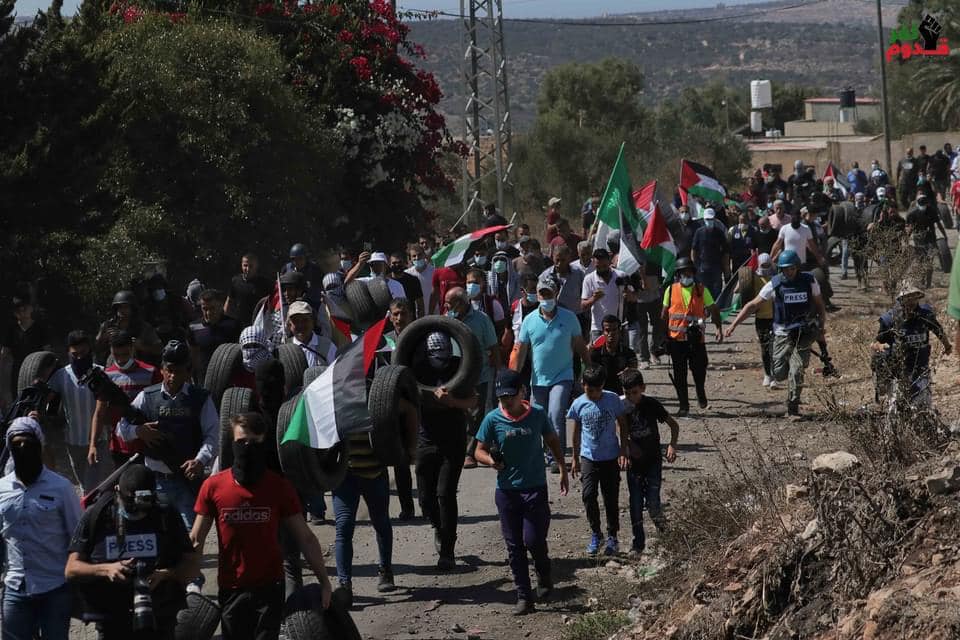 كفرقدوم- أصيب ١٥ مواطنا بالرصاص المعدني المغلف بالمطاط بينهم صحفيين والعشرات بالاختناق جراء قمع جيش الاحتلال لمسيرة كفر قدوم المركزية التي نظمت احياء للذكرى العشرين لانتفاضة الأقصى ورفضا للتطبيع وتنديدا بما تتعرض له البلدة من وسائل قمعية .
