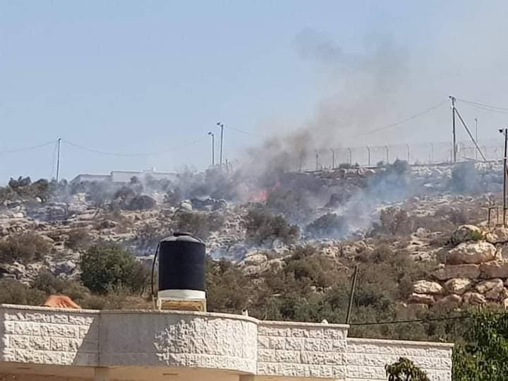 وحسب مصادر محلية فإن مستوطنين أضرمو النار في حقول الزيتون بالأراضي الواقعة بمنطقة عراق التوت شرقي البلدة والتي تعود ملكيتها لكل من يوسف ومصطفى وصبيح عبد الإله.